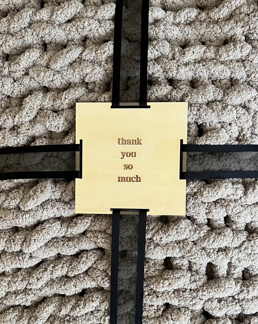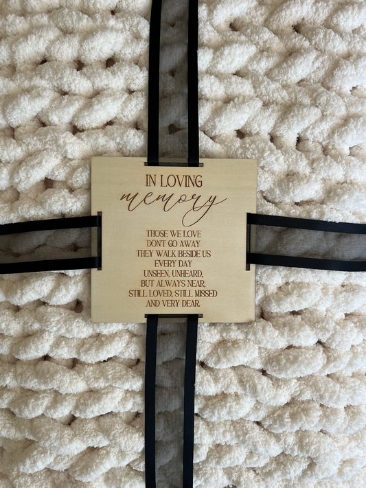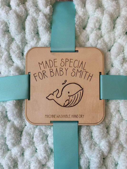 Our wooden Keepsake Blanket Tags work with any blanket and complement any type of ribbon!